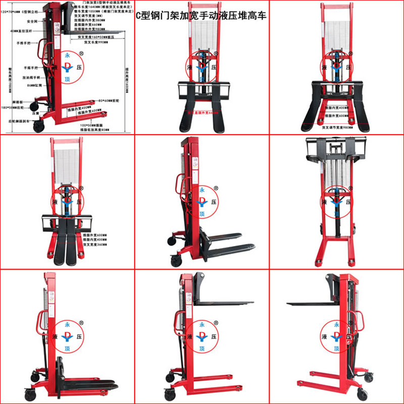 永顶2吨C型钢1.6米门架加宽手动液压堆高叉车 手摇堆垛装卸油缸