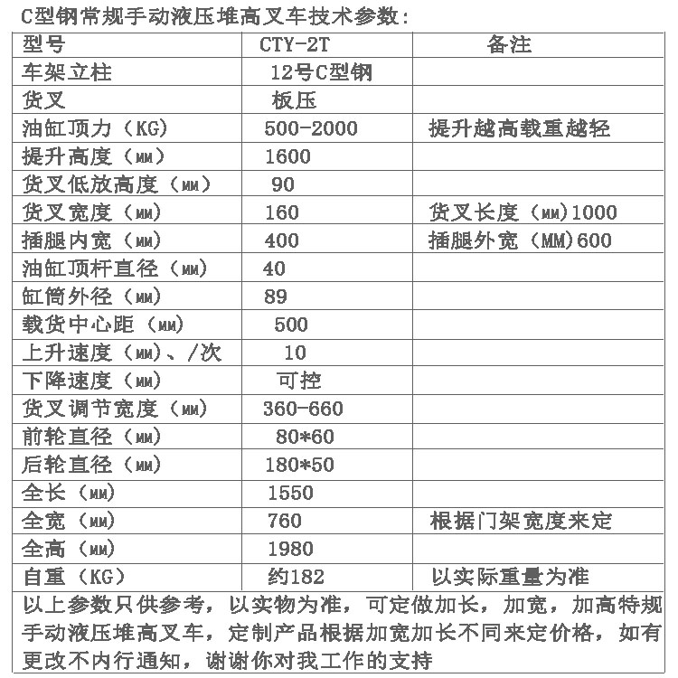 本公司主营产品有半电动堆高车,电动堆高车 , 手动堆高车, 宽腿堆高车,堆高车 电动油桶堆高车,半电动油桶堆高车,平衡式电动油桶堆高车,半电动油桶装卸车,电动油桶倒料车,半电动油桶翻转车,油桶搬运车,油桶翻转到料车,手动液压搬运车,手动叉车,搬运车,托盘搬运车,手动液压叉车,液压泵,油泵,千斤顶,油缸,液压动力单元等液压搬运设备,欢迎你的选购。